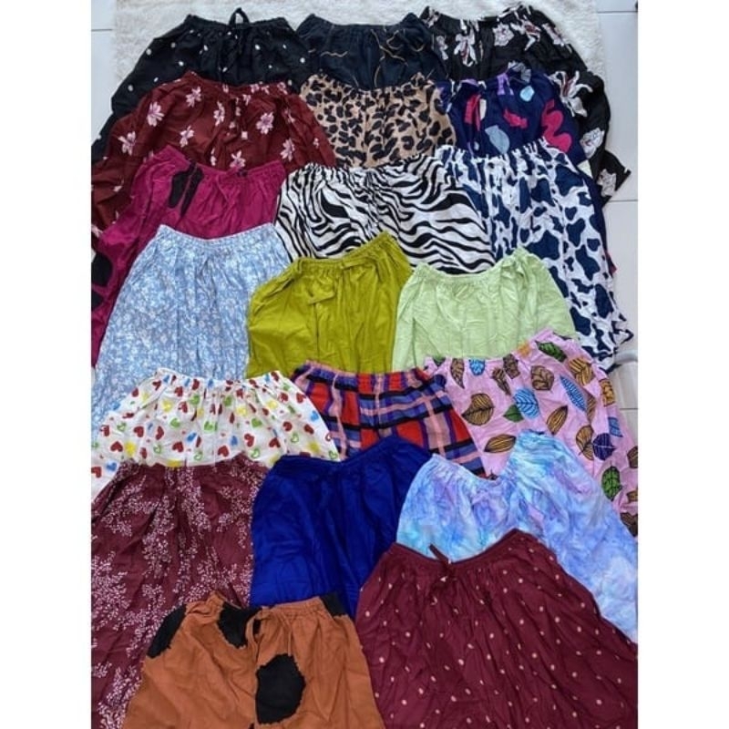 [ ISI PAKET 5 PCS ] CELANA PENDEK KOLOR JUMBO MOTIF BALI FITT L-XXL | CELANA HOTPANS BALI RAYON MURAH