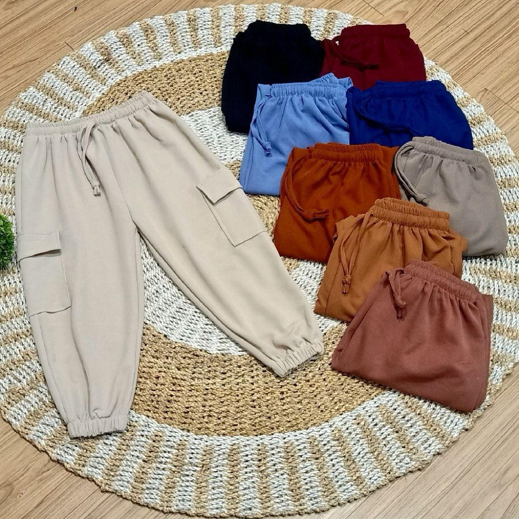 (Polos) CELANA 3/4 CARGO KNIT JUMBO WANITA / CELANA Polos CEWEK BIG SIZE / CELANA KAIN / Celana Knit / CELANA SANTAI / C
