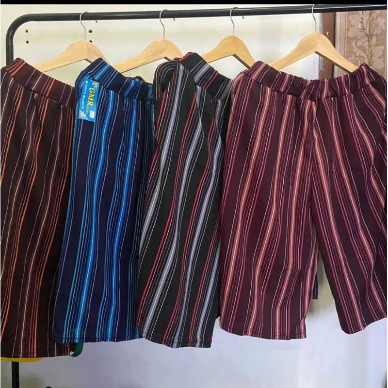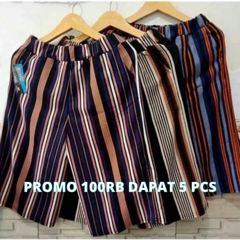 Paket 100rb Dapat 5 Pcs Celana Kulot Salur pendek 7/8 Bawahan Wanita Model Santai Ukuran Standar Jumbo