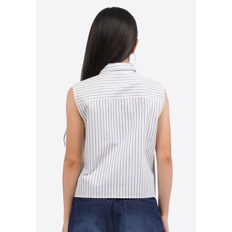 COLORBOX Pleated Stripes Sleeveless Blouse Off White
