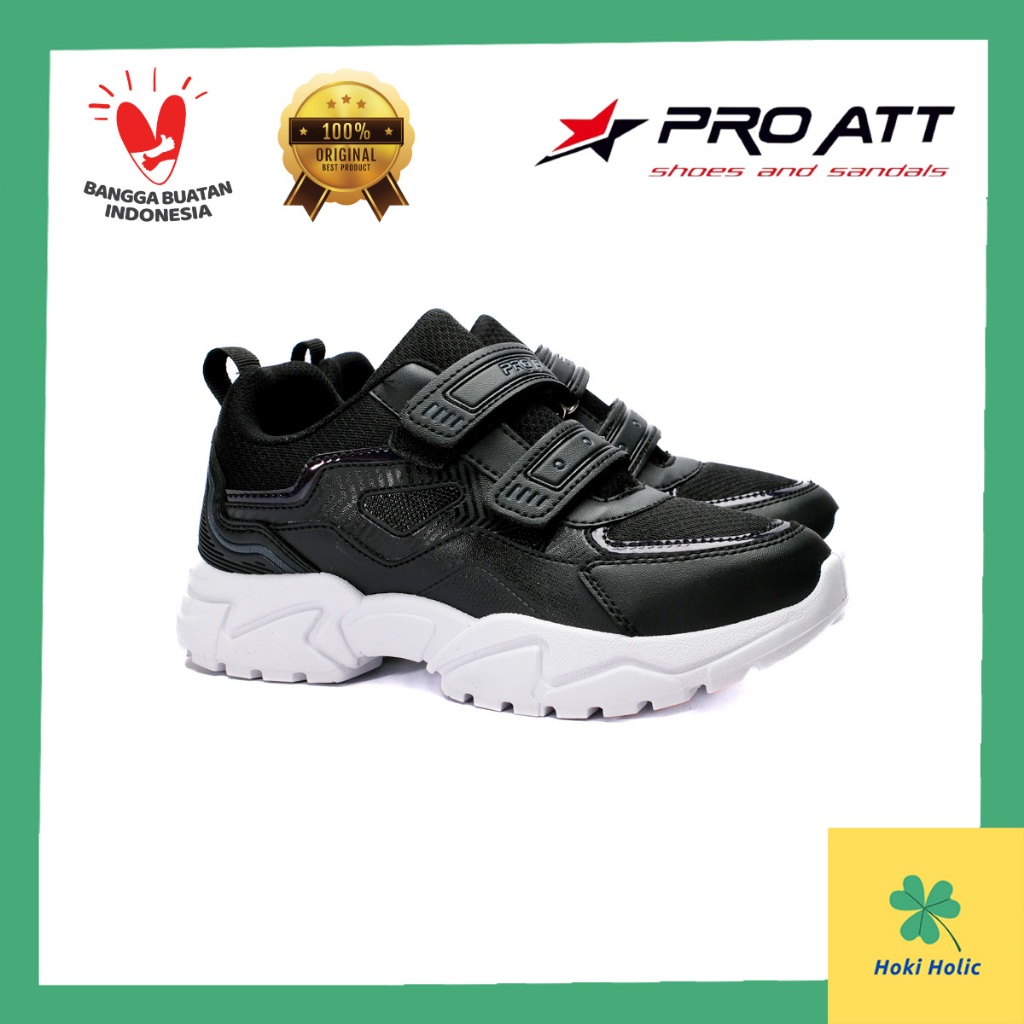 Sepatu Sekolah Anak Cowok Cewek SD SMP Hitam Putih Perekat Original PRO ATT Sneakers Casual Anak