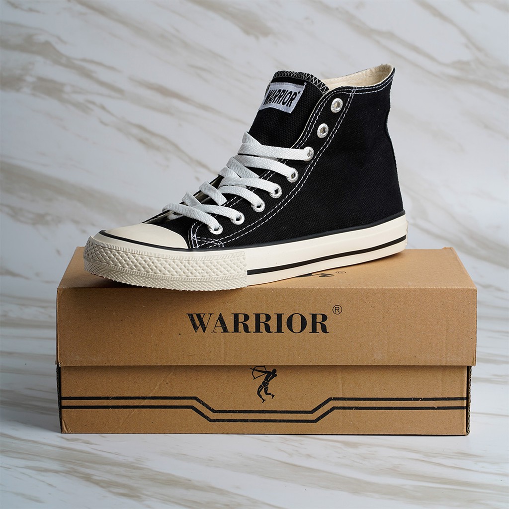 SEPATU WARRIOR SPARTA HIGH BLACK WHITE ORIGINAL SIZE 31-44 / SEPATU ANAK SEPATU HITAM PUTIH Sepatu Sekolah