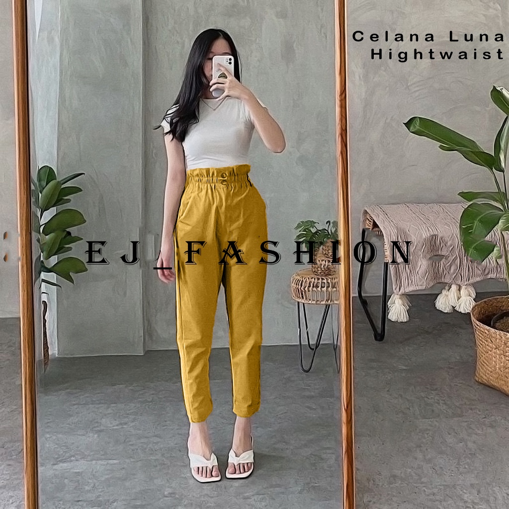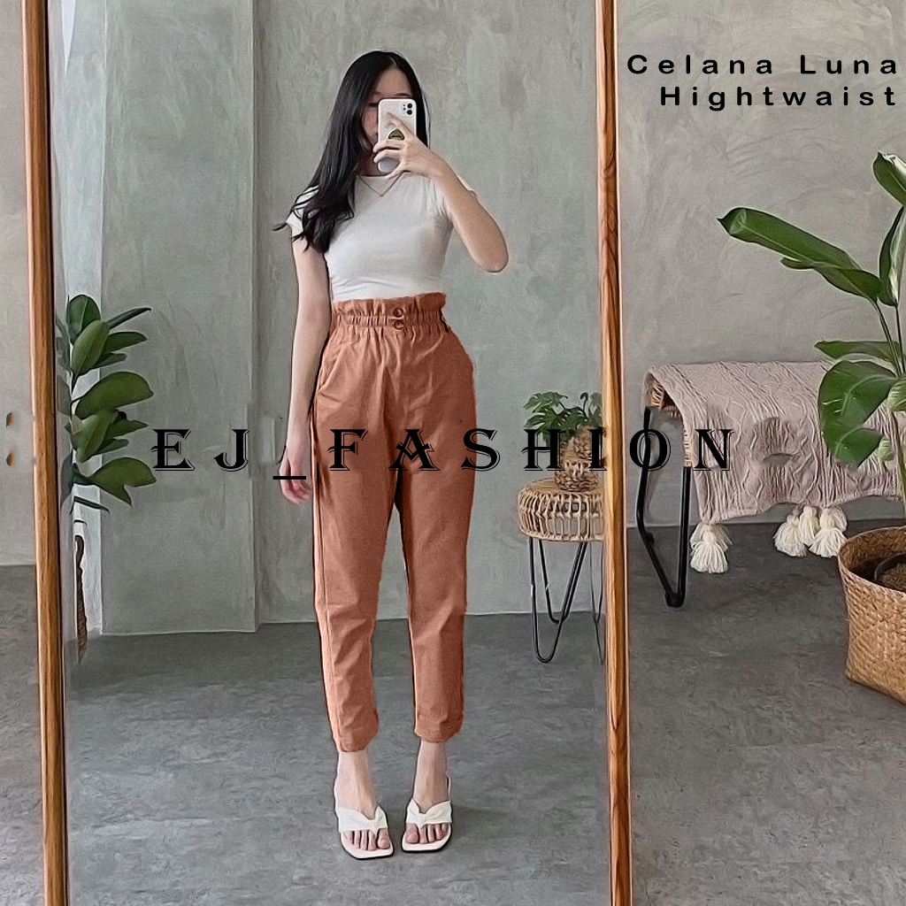 EJ Fashion Celana Wanita Kulot Luna Pensil Panjang Highwaist Kerut Susun Kancing 2 Terbaru 2024 Kekinian korean Style