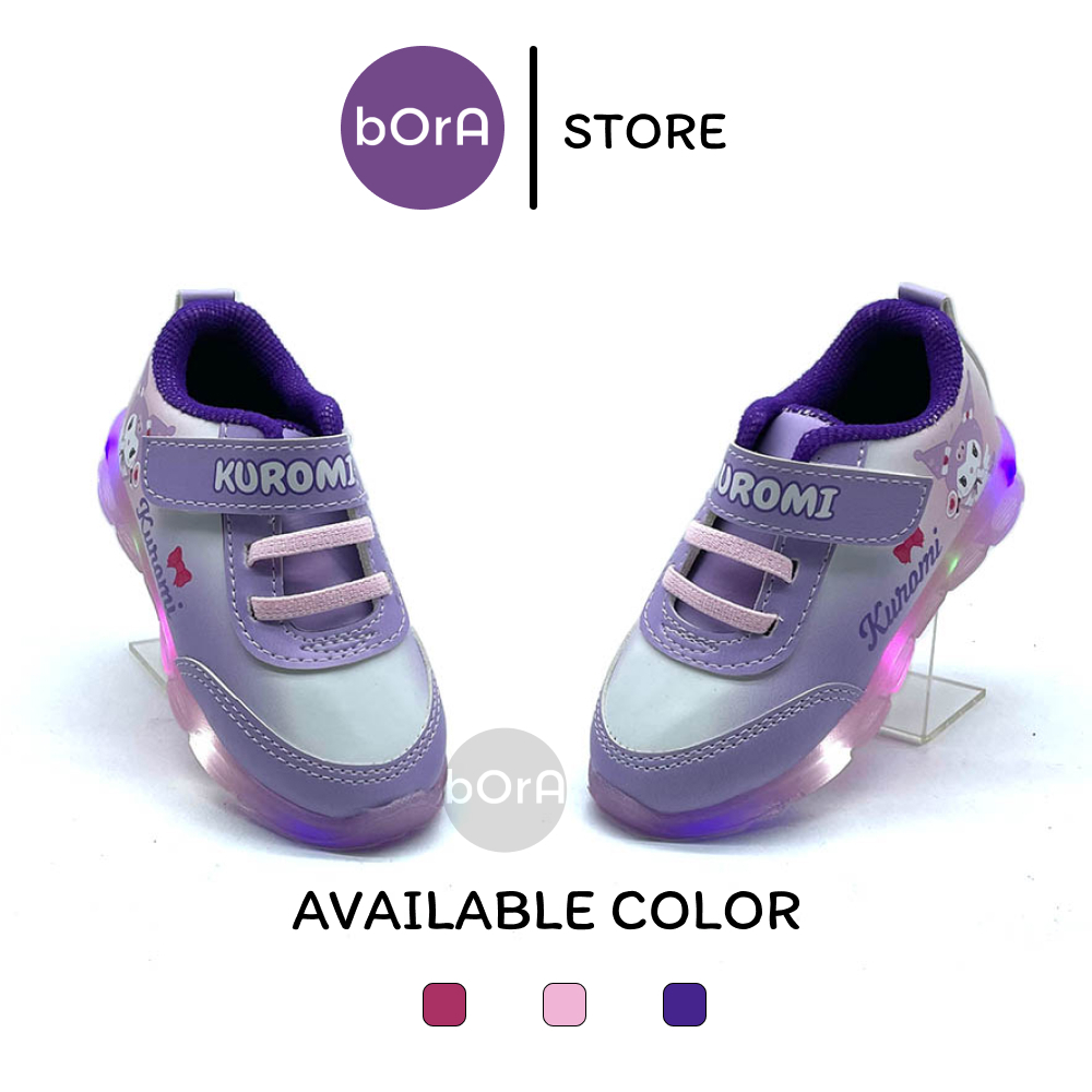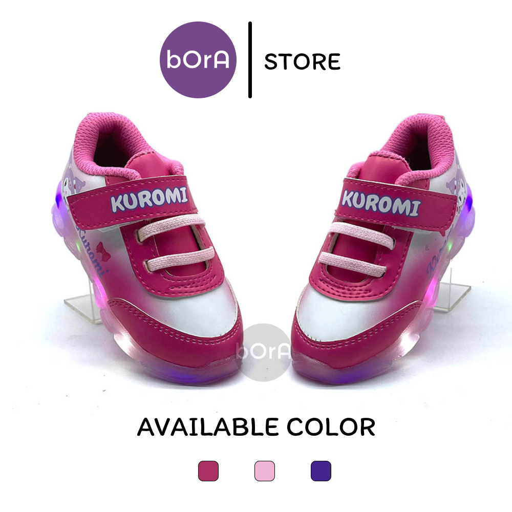 Sepatu Sneakers Anak Perempuan LED Menyala Motif KUROMI 1-6 TAHUN