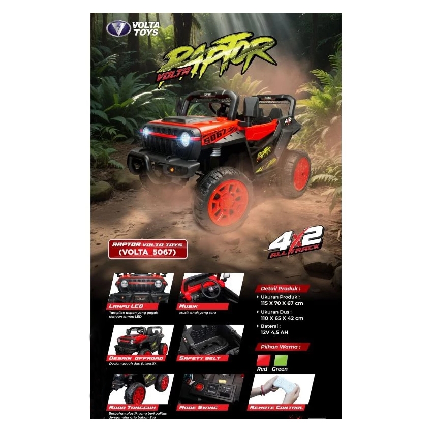 Mainan Mobil Aki Anak Volta 5066 Moster Himalaya Sahara V5066 4X4 Ban Eva