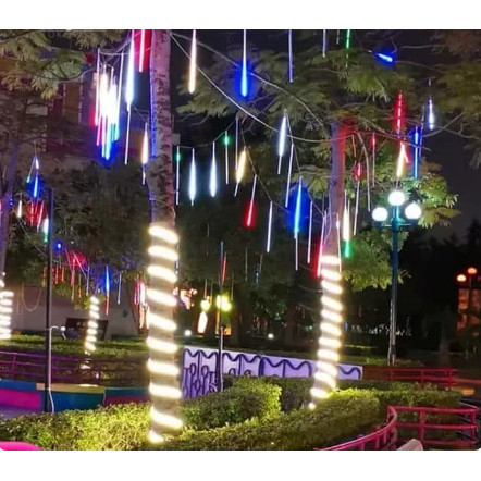 Lampu meteor led 10 batang 50cm jatuh rain taman hias 10 Batang rgb
