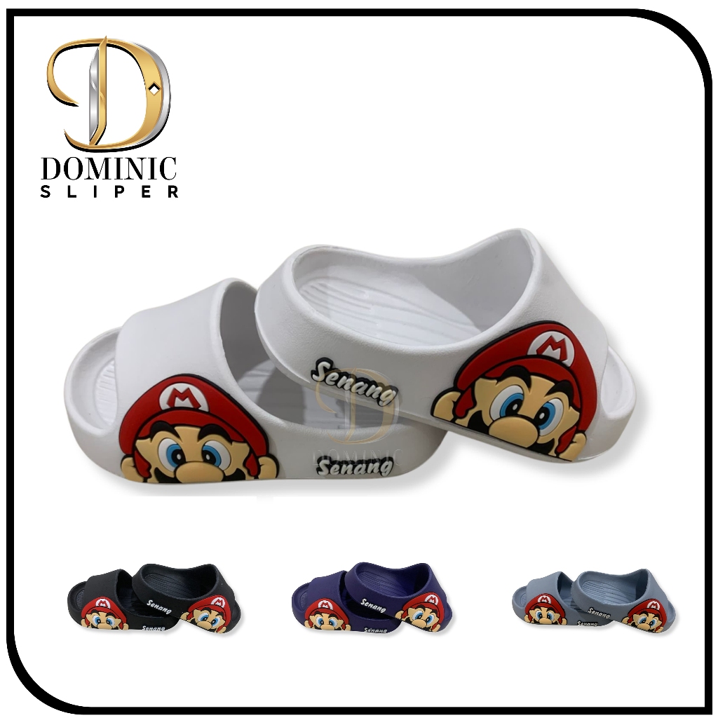 Sandal Slop Anak Gambar Mario Sandal Slide on Karet Anti Slip Ringan Sandal Slop Viral ukuran 24-35