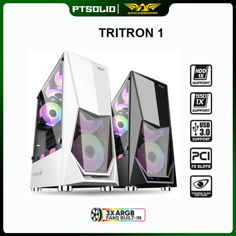 Casing Gaming Rakitan Armaggeddon Tritron 1 ATX & M-ATX Free 3x Fan ARGB