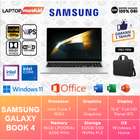 Laptop Samsung Galaxy Book 4 Core 7 150U 16GB 512GB 15.6" Full HD IPS Windows 11 Pro + OHS 2019