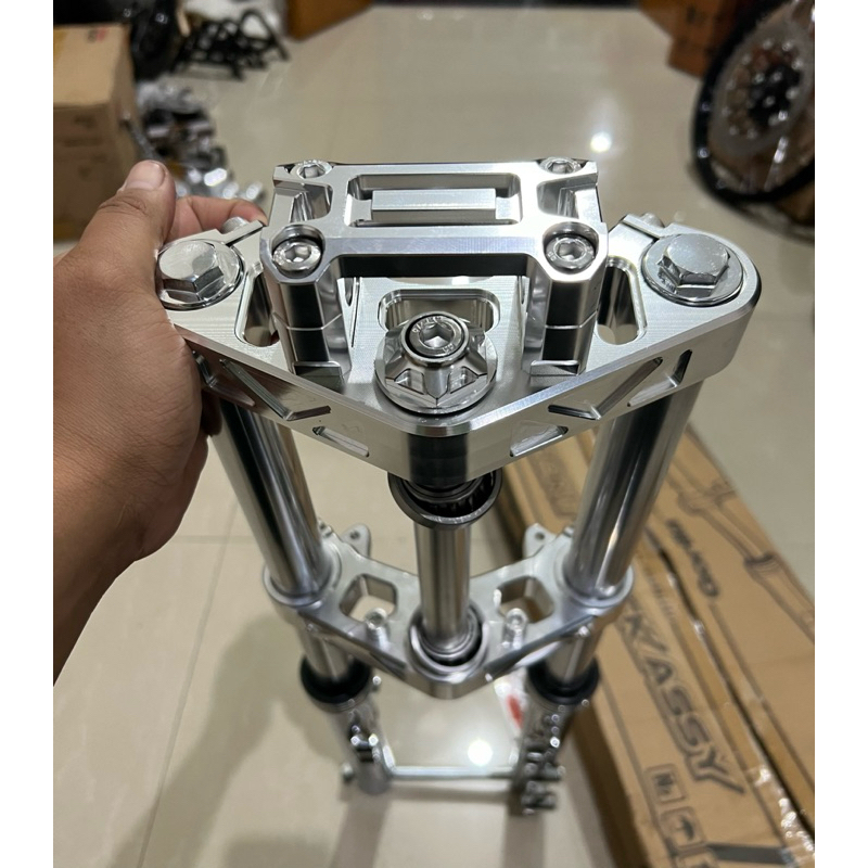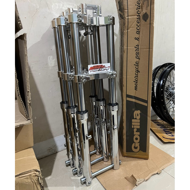 Shock Skok Depan NINJA Gorilla Crom Krom Chrome T Segitiga Aluminium CNC pnp TIGER MEGAPRO GL CB