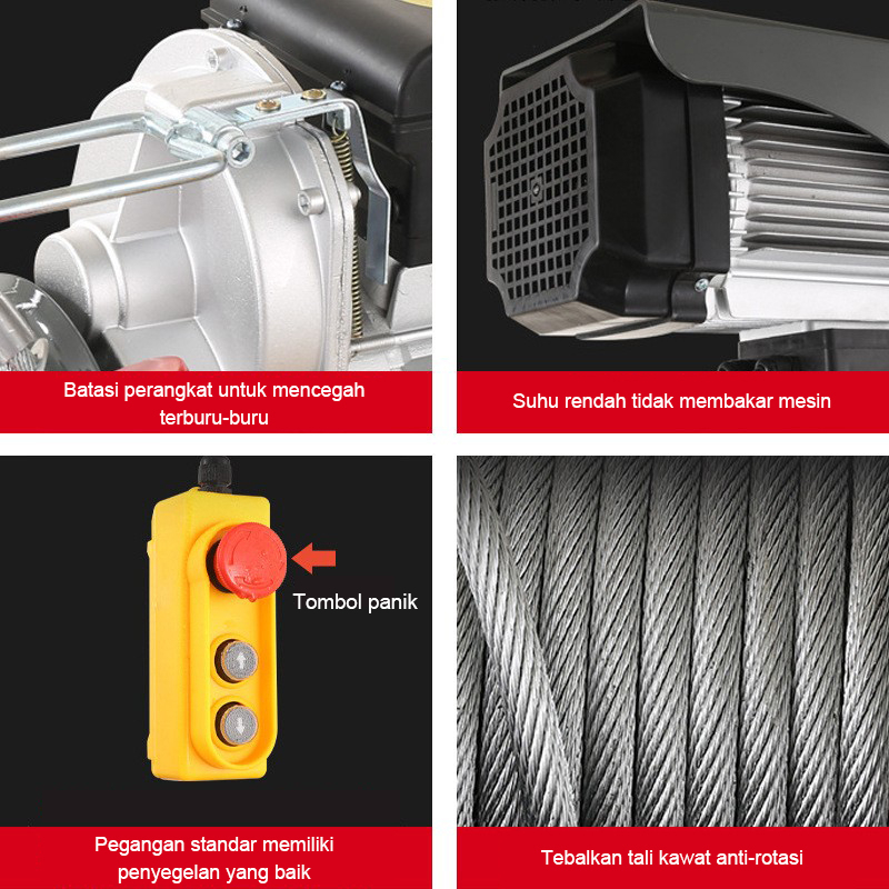 Electric Hoist Wire Rope Katrol Mini Listrik Panjang 12M Indoor dan Outdoor Kecil Derek Elektrik PA-200 PA-300 PA-600 PA
