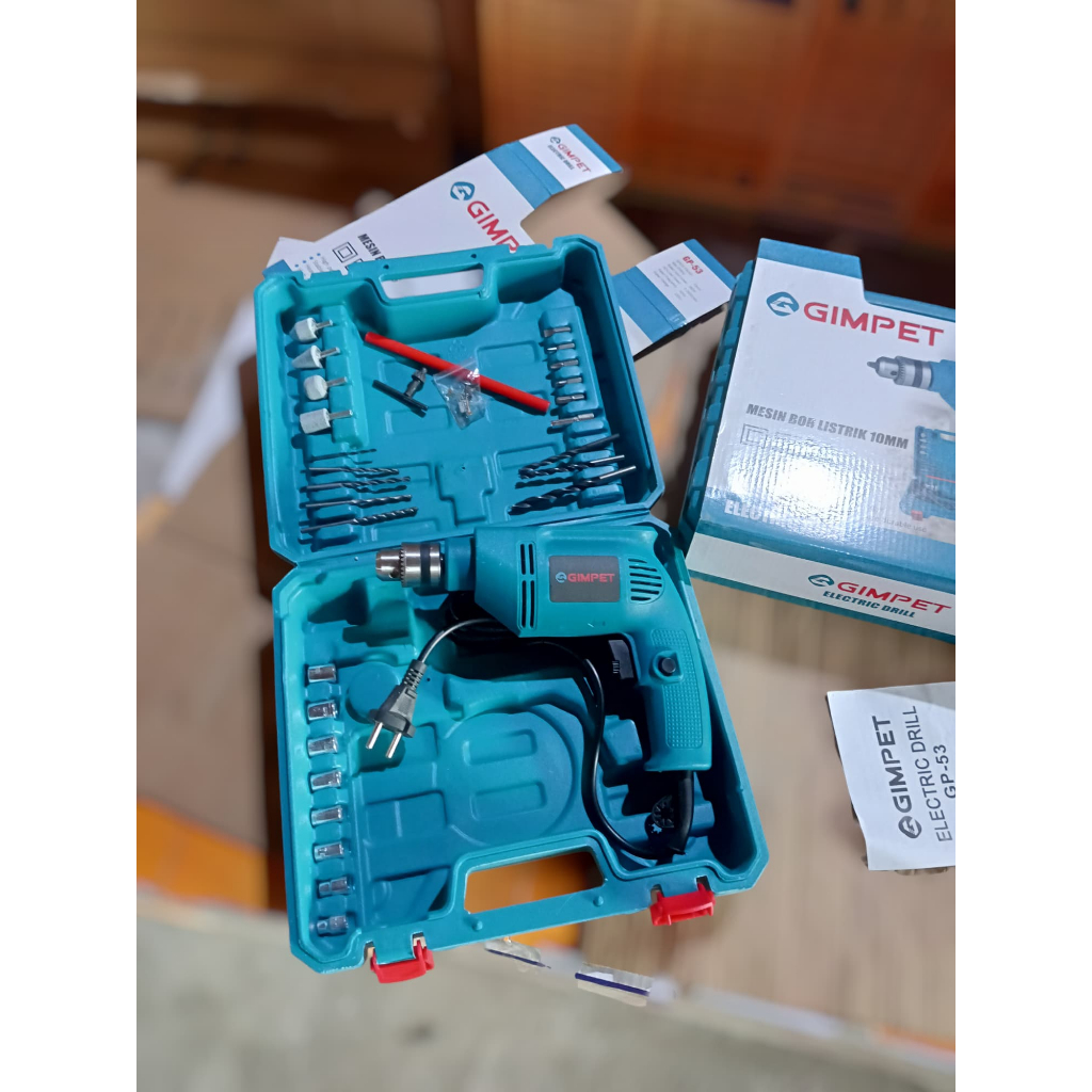 SET KOPER MESIN BOR TANGAN LISTRIK BOLAK BALIK 10MM FULL AKSESORIS GIMPET