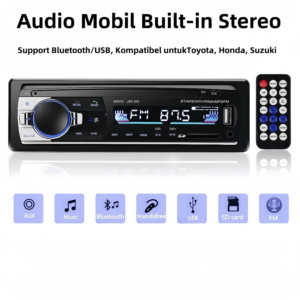 (Stok Siap) Ori Singe Din Head Unit Tape Audio Radio Mobil Multifungsi Bluetooth USB MP3 FM Radio JSD-520 JSD-550 Audio
