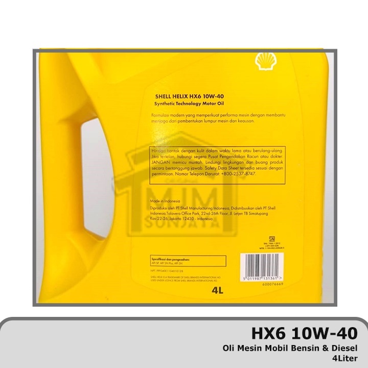 Oli Mesin Mobil Shell Helix Hx6 Sae 10w-40 4liter 10w40 Full Synthetic Api Sn Cf Hx 6 10w 40 ASLI ORIGINAL BEST SELLER