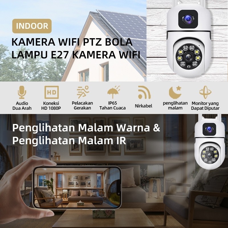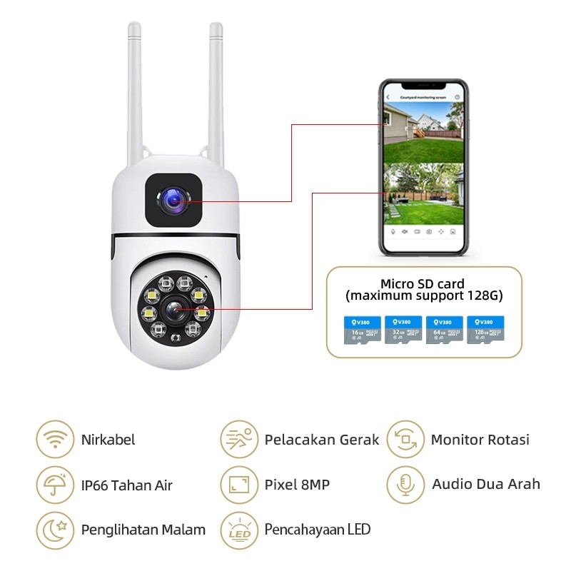 CCTV Kamera Dual camera 8MP 1080P v380 pro IP66 Dual Lens Outdoor waterproof terhubung dengan dan berputar 360° secara o