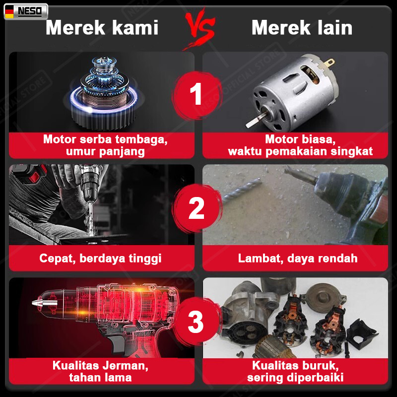 NESO JERMAN 3in1 Mesin Bor Listrik Bor Baterai Bor Listrik Bor Tanpa kabel Mesin Cordless Screwdriver Murah Elektrik Dri