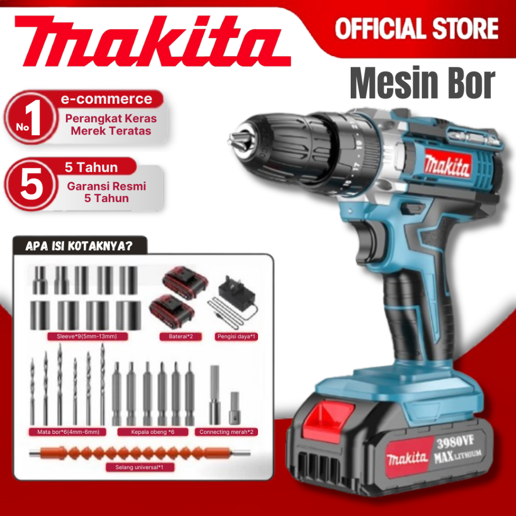 ✨✨Makita 1288VF Mesin Bor & Impact Tanpa Kabel 2 Baterai + Set Mata Bor Garansi 5 Tahun