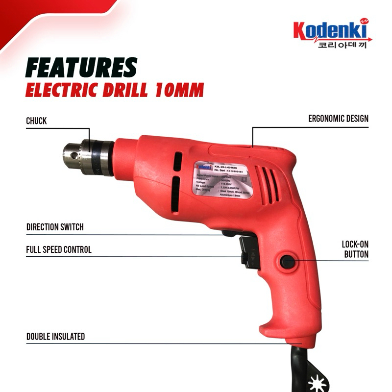 Mesin Bor Listrik 10mm Kodenki Electric Drill 10 mm Mesin Bor Besi Kayu