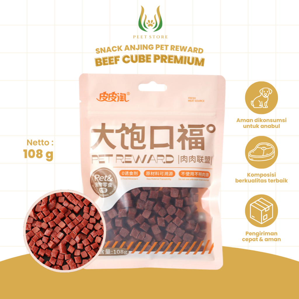 Makanan Hewan/Snk Anjing Pet Reward Cemilan Sehat Doggy Beef Cube Premium Makanan Hewan Dog 108 Gram