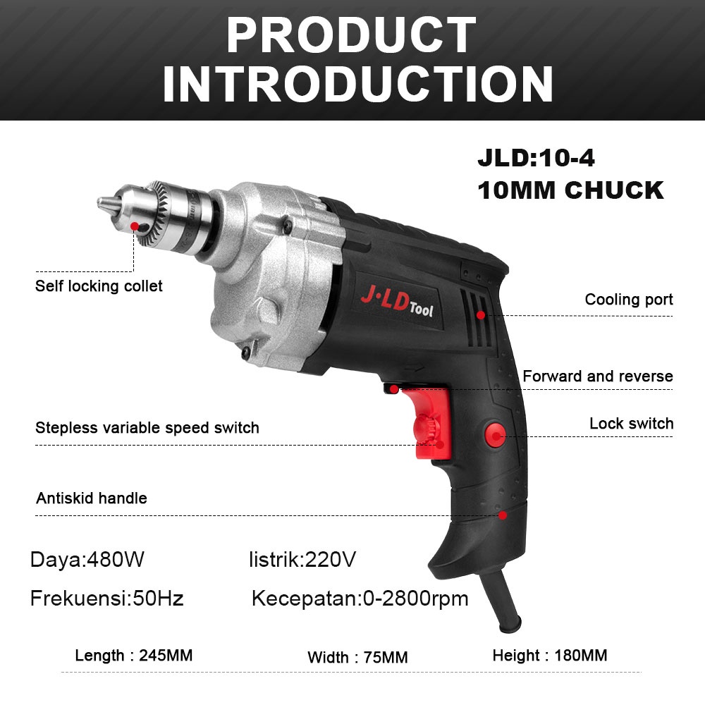 JLD 480W MESIN BOR LISTRIK 10mm bor tembok listrik bolak balik mesin bor murah ELECTRIC DRILL J10-4