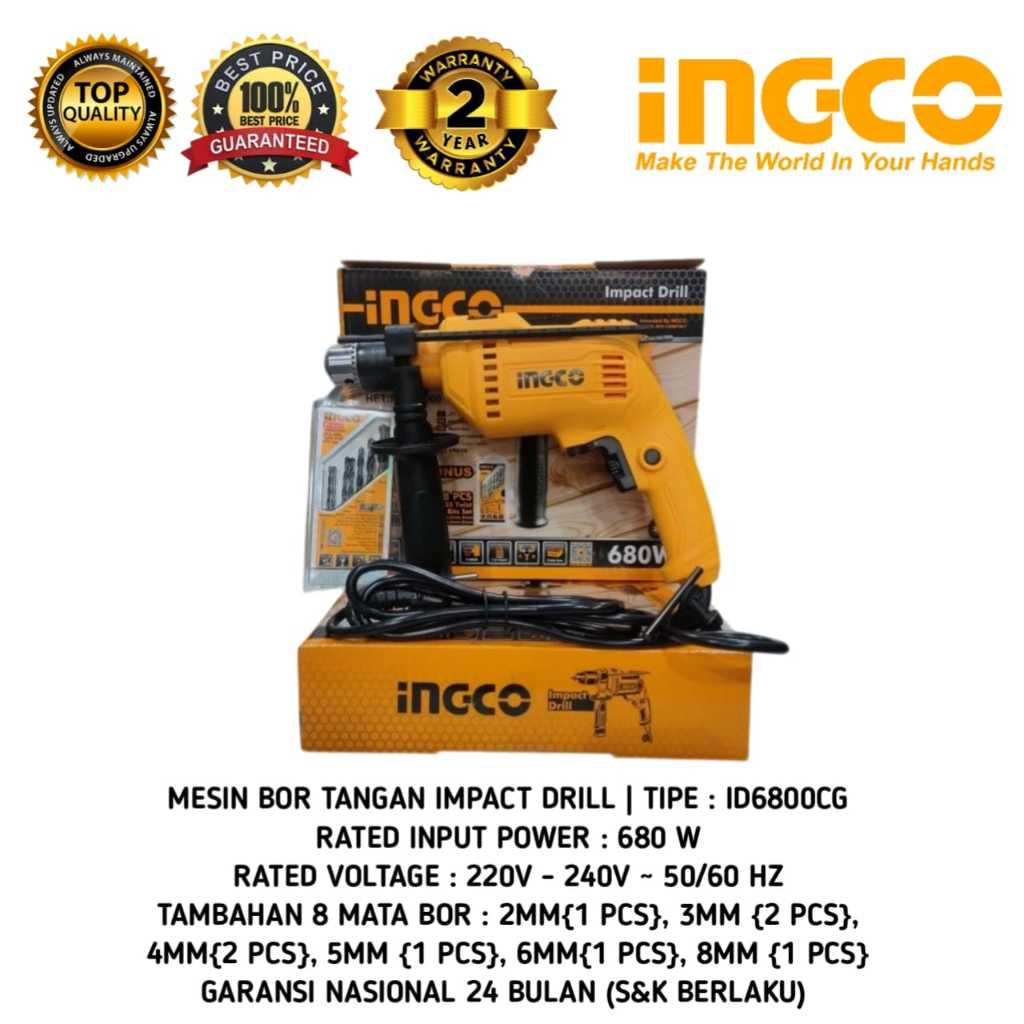 Mesin Bor Tangan 13mm 13 mm Impact Drill 13mm 13 mm INGCO ID6800CG ID6800CG MESIN BOR TANGAN BETON IMPACT DRILL 13mm 13