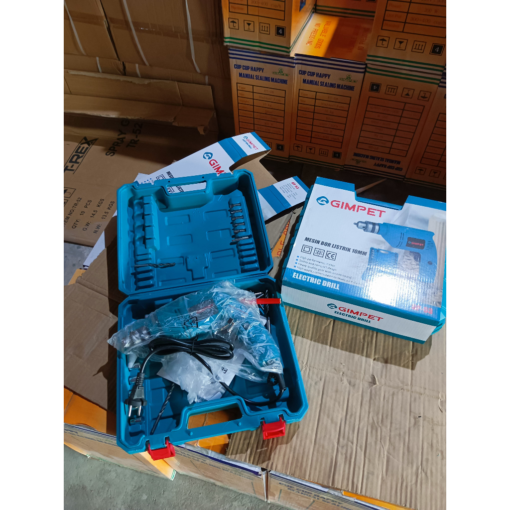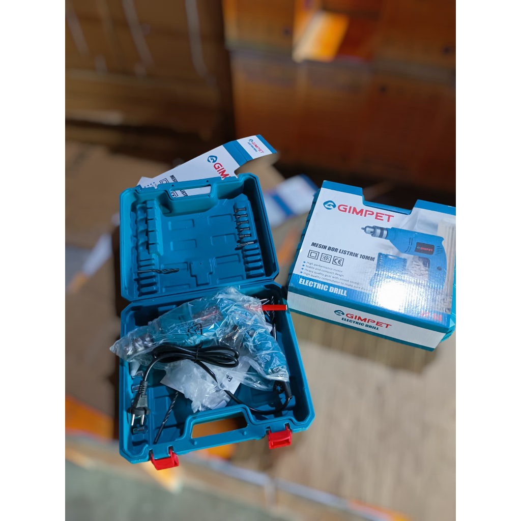 SET KOPER MESIN BOR TANGAN LISTRIK BOLAK BALIK 10MM FULL AKSESORIS GIMPET