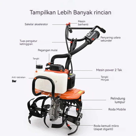 REAIM Cultivator Mini Tiller Bensin - Mesin Pengolah Tanah Mikro untuk Kebun & Pertanian