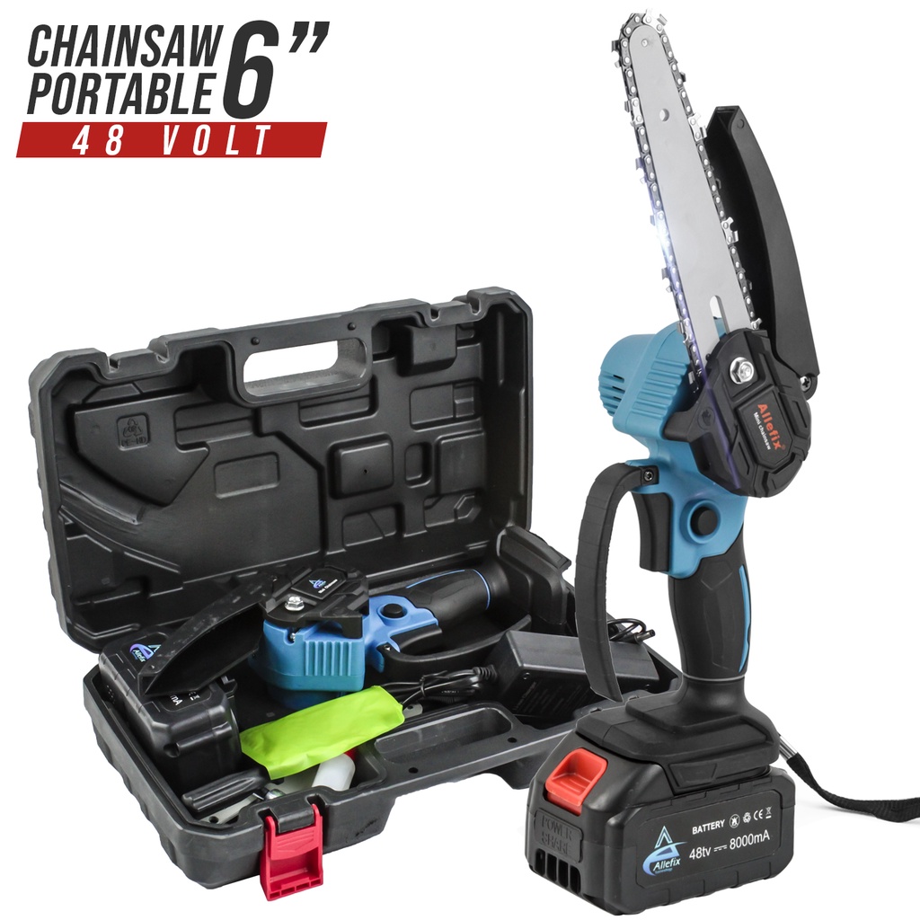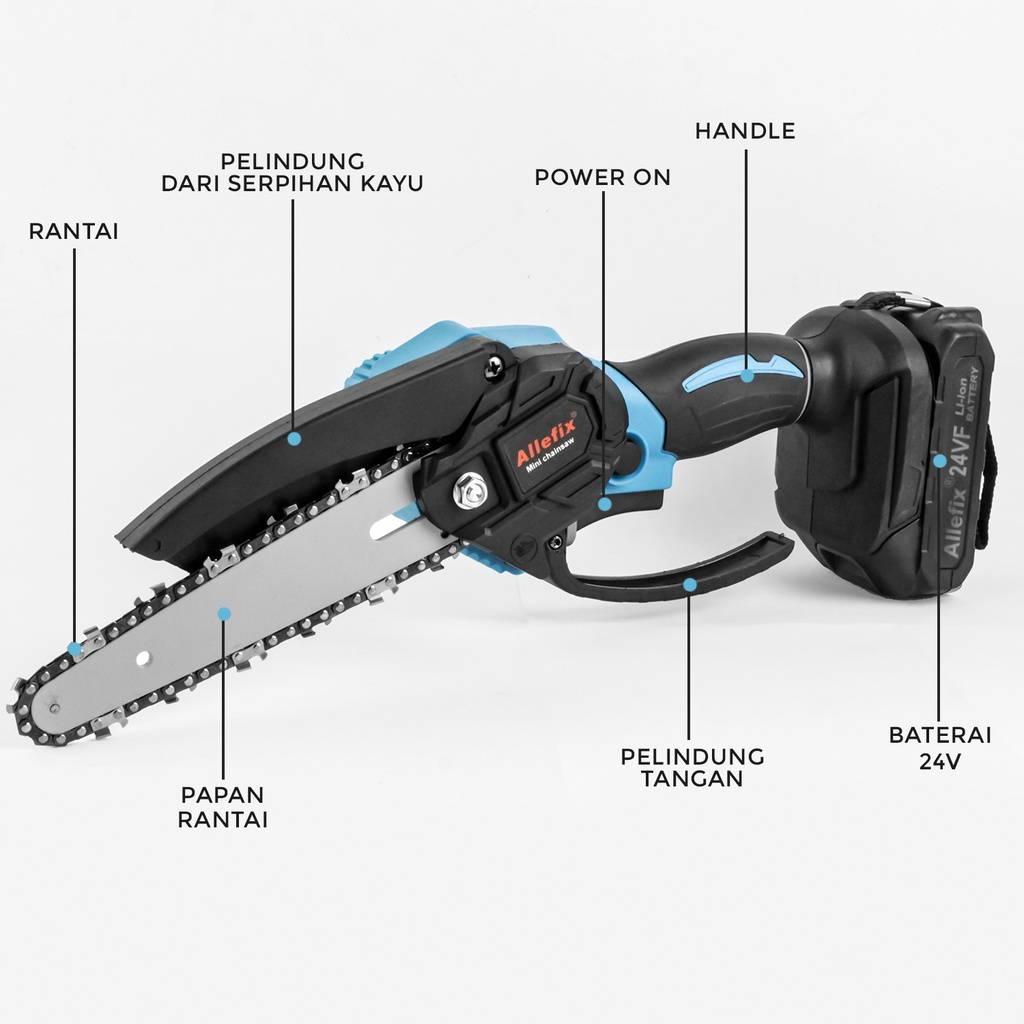 Allefix Chainsaw Gergaji Rantai 24V/48V 1 Baterai Gergaji Elektrik Mini Portable 6016 Gratis Ongkir
