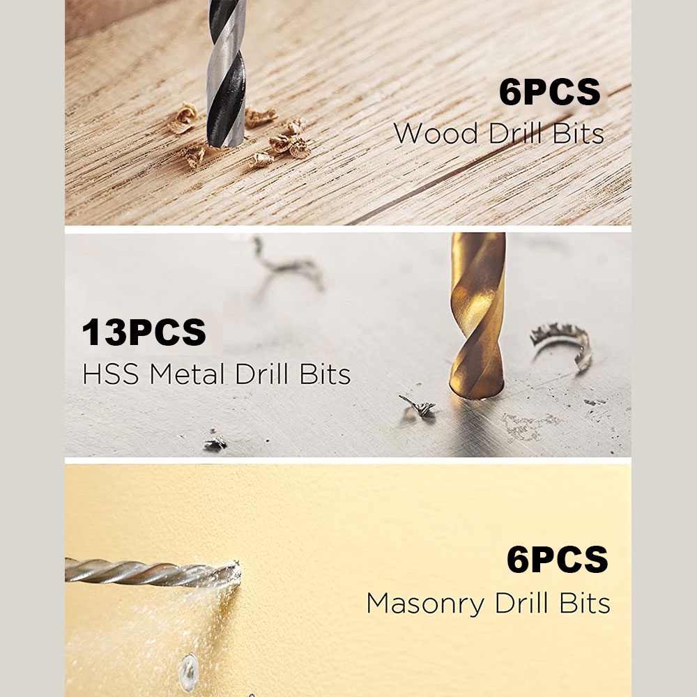 JLD 100pcs mata bor set Mata Bor untuk Logam, Kayu, Batu-100Pcs Titanium, Baja Kecepatan Tinggi Mata Bor Obeng Set