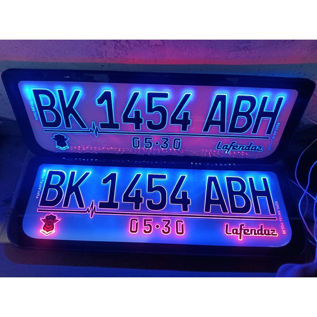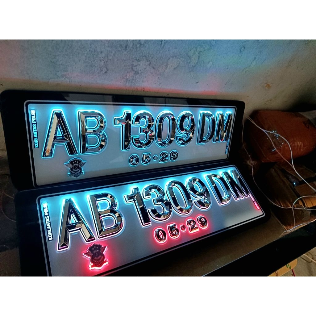 Plat Nomor Mobil Nyala Led Huruf Lancip dan Akrilik