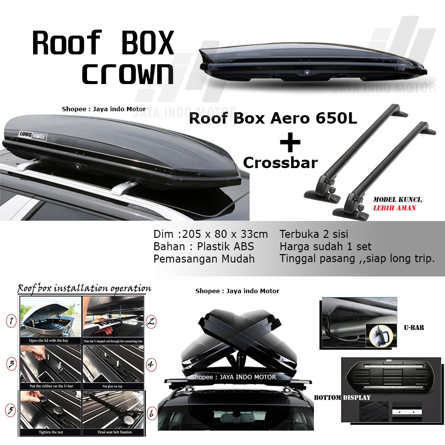 Roof box slim 650L import Glossy 1 set tinggal pasang