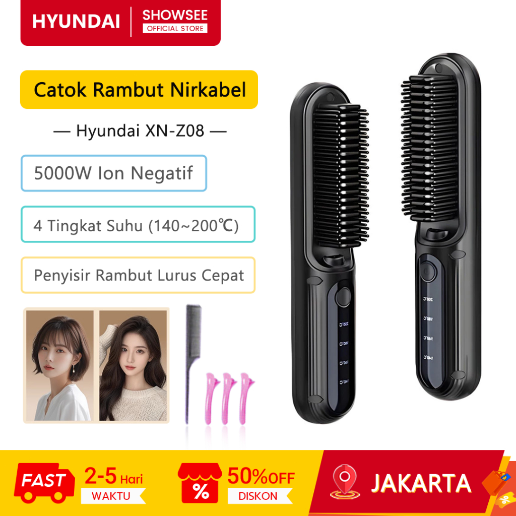 Hyundai Catok Rambut Nirkabel XN-Z08 5000W Ion Negatif Hair Straightener Pengeras Rambut