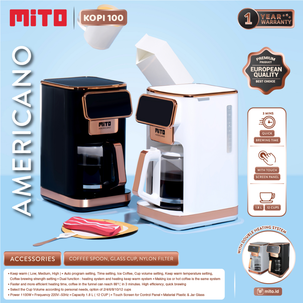 MITO DIGITAL COFFEE MAKER / MESIN KOPI 1.8L - DOUBLE HEATING SYSTEM KOPI100 TERLARIS