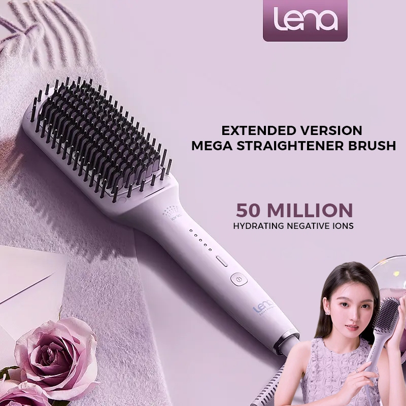 Lena Mega Straightener Brush LN-914F - Catok Sisir Rambut Lurus Catokan Korean Anion Negative Ion Hair Iron Catok Salon Pelurus