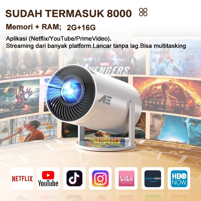 AE Proyektor Android 13.0 4k Full HD Mini Infocus Proyektor Auto Keystone YouTube 220 ANSI 2G+16G