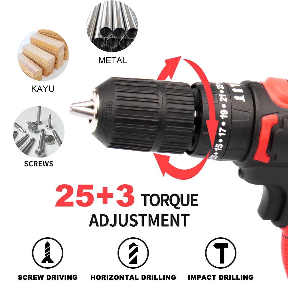JLD 13MM MESIN BOR BATERAI 36v impact bor cas bor kayu bor tembok bor beton bor metal CORDLESS DRILL IMPACT 36 VOLT SET