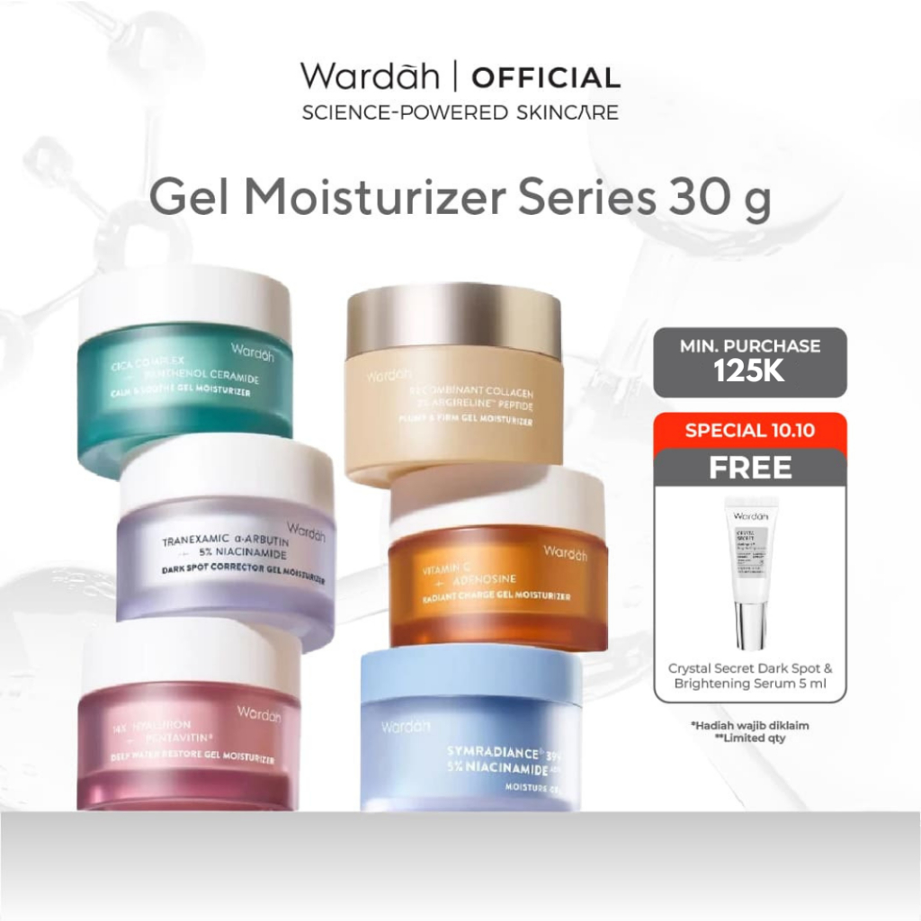 WARDAH Gel Moisturizer Series 30 g - NEW Collagen Moist, Tranexamic Alpha Arbutin, Symradiance, Cica Complex + Pantheno