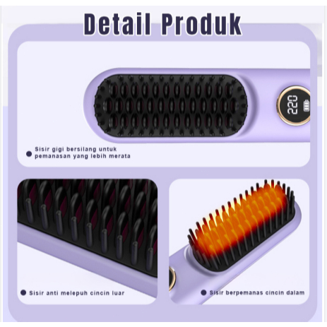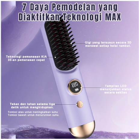Sisir Catok Rambut 2in1, Catok & Sisir Rambut Anti Kusut Pelurus Rambut Digital LED