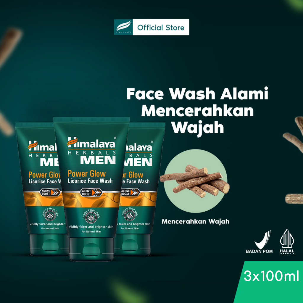 ( Paket Hemat Isi 3 ) Himalaya Power Glow Licorice Face Wash 3 x 100ml - Sabun Cuci Muka Pria dengan Akar Manis Herbal