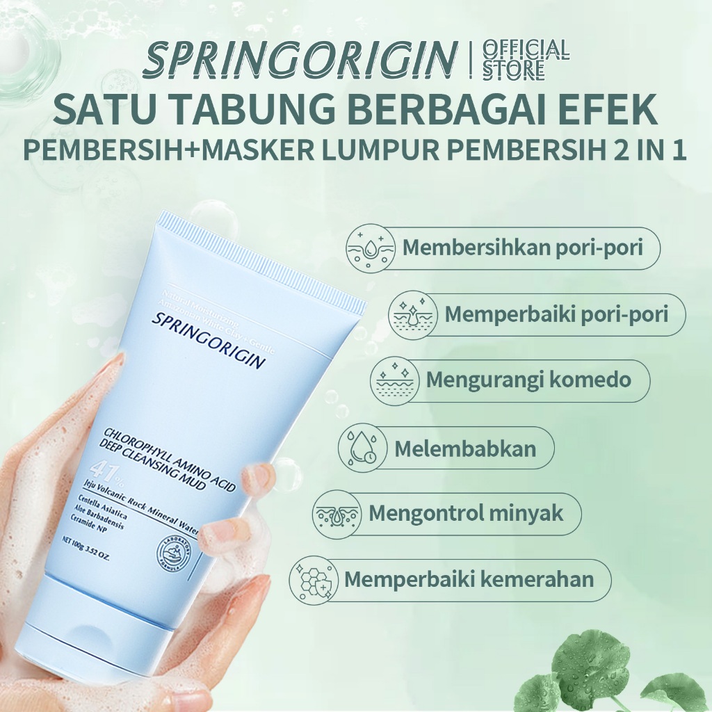 SPRINGORIGIN Ceramide Amino Acid Cleansing Mud Membersihkan Pori-pori Mengurangi Komedo Facial Wash Sabun Cuci Muka Brig