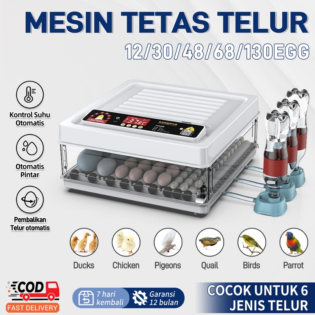 Penetas Telur Rumah Tangga Otomatis 12-130 Buah Pengisian , untuk Ayam, Bebek, Angsa, dan Merpati