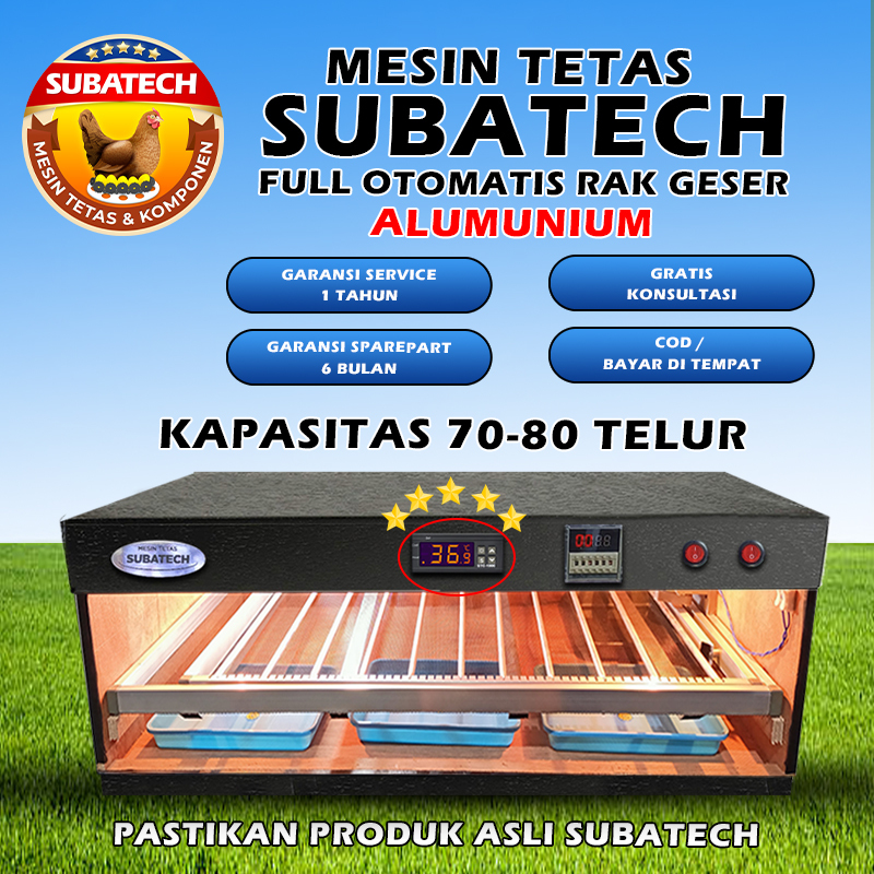 SUBATECH Mesin Tetas Telur Full Otomatis Rak Geser Kap 70 80 Penetas
