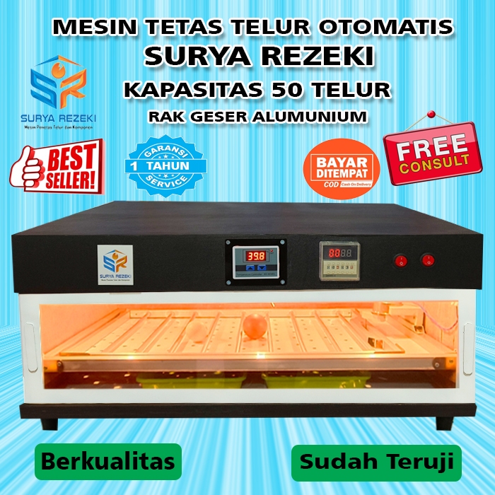 mesin tetas telur full otomatis kapasitas 50 telur rak geser alumunium