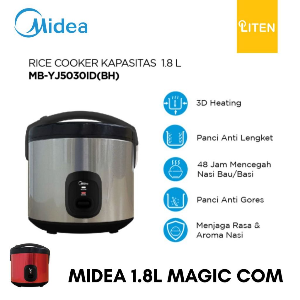 Rice Cooker MIDEA 1.8L - MB-YJ50301D Series Magic Com 1.8 Liter 400 Watt Crystal Gold Pot Non Stick