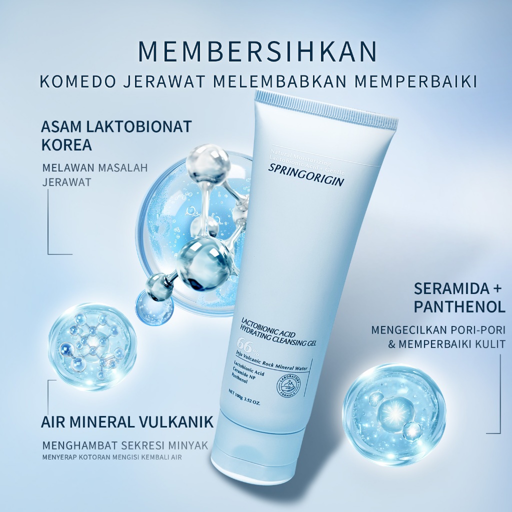 SPRINGORIGIN Gentle Gel Cleanser Acne Facial Wash Sabun Cuci Muka Deep Cleansing Bright Mengobati Jerawat Mengecilkan