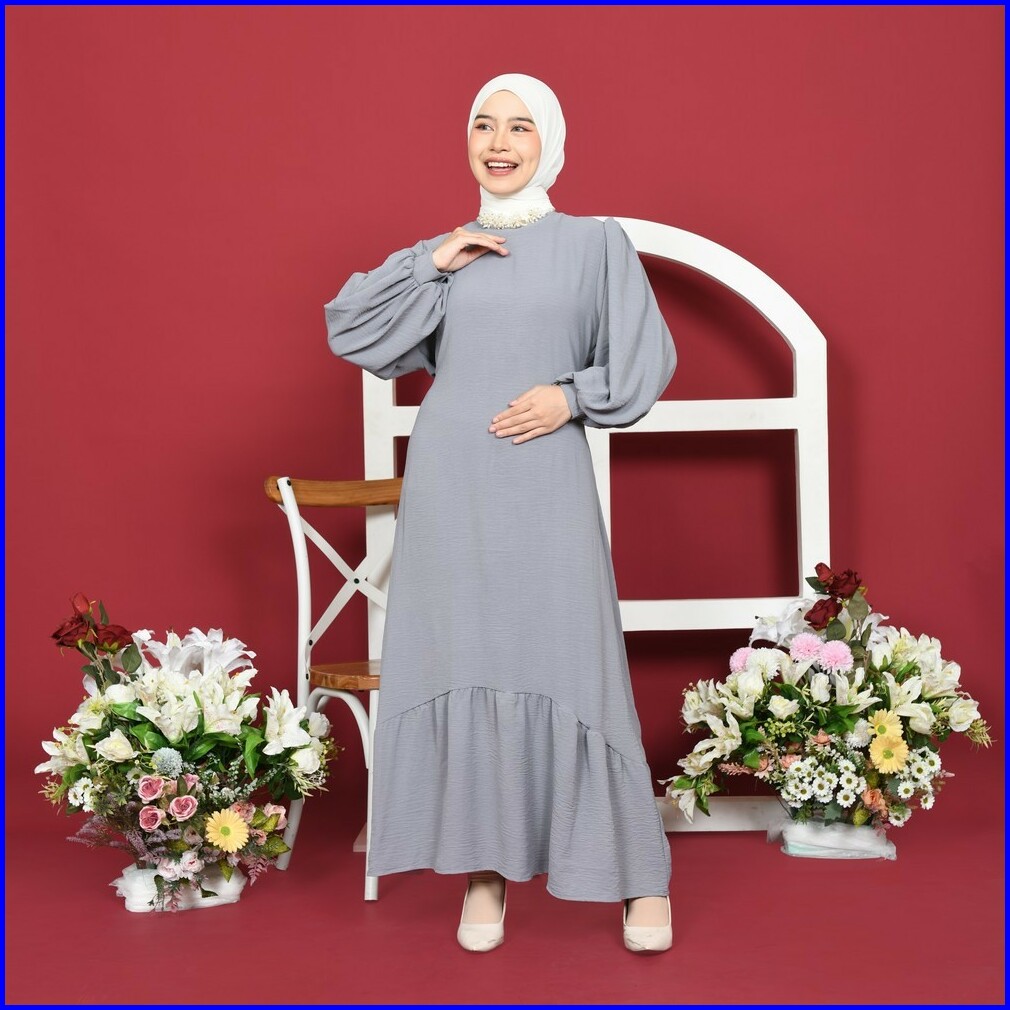 Mybamus X Islahfuada Zavia Crinkle Dress Gamis Muslim - Dress Jumbo - Dress Lengan Balon