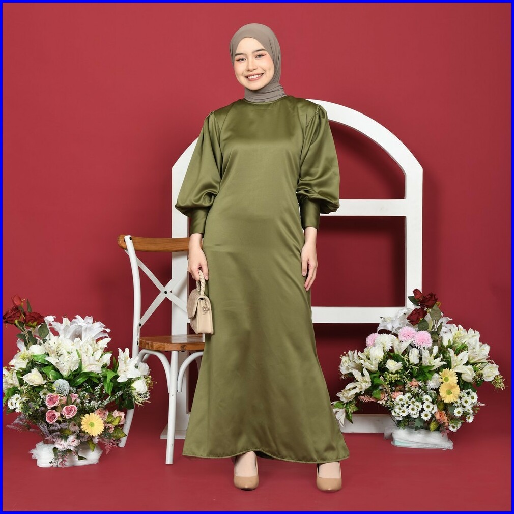 Mybamus X Rafikarahma - Ariel Shiny Dress - Gamis Satin Maxi Dresspanjang Gamis Lebaran 2025