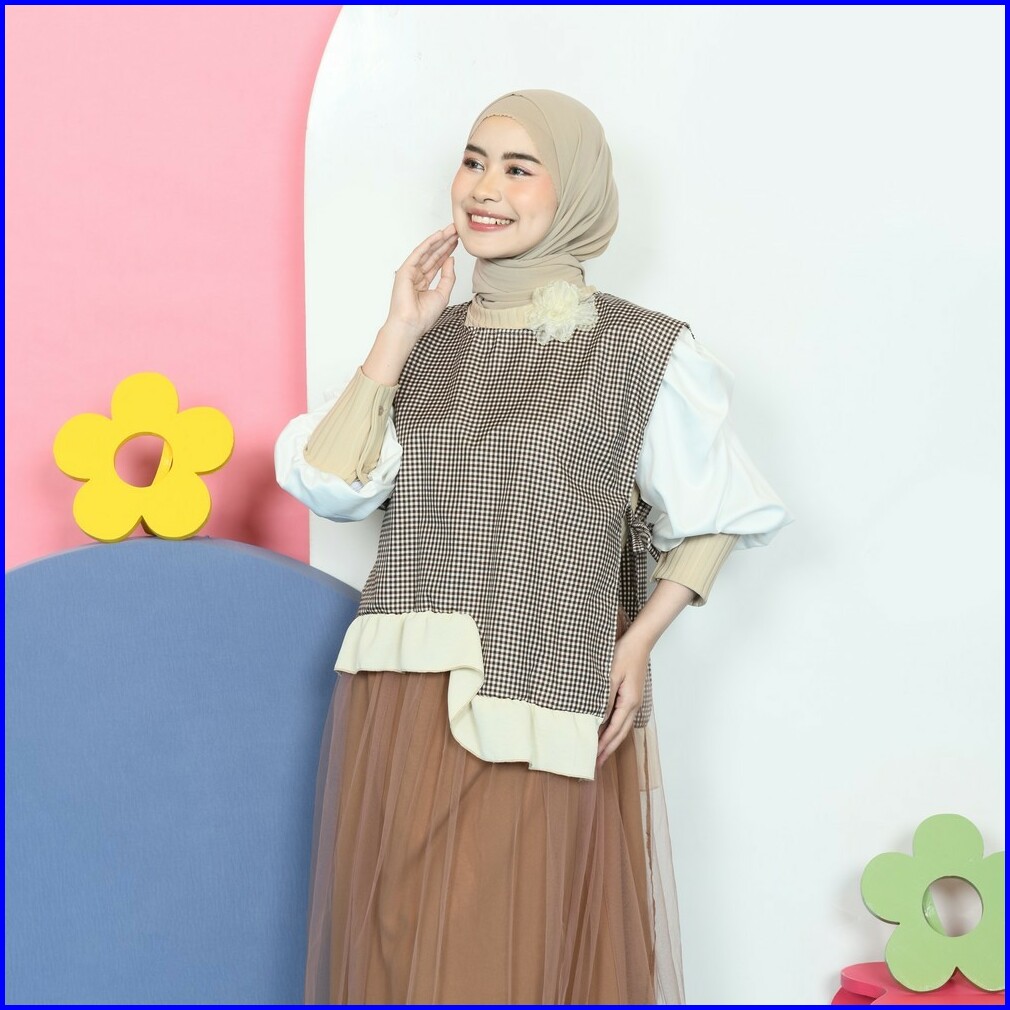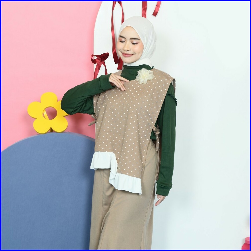 Mybamus Array Playfull Outer Vest Rompi Wanita Polkadot Kotak Tali Samping Polka