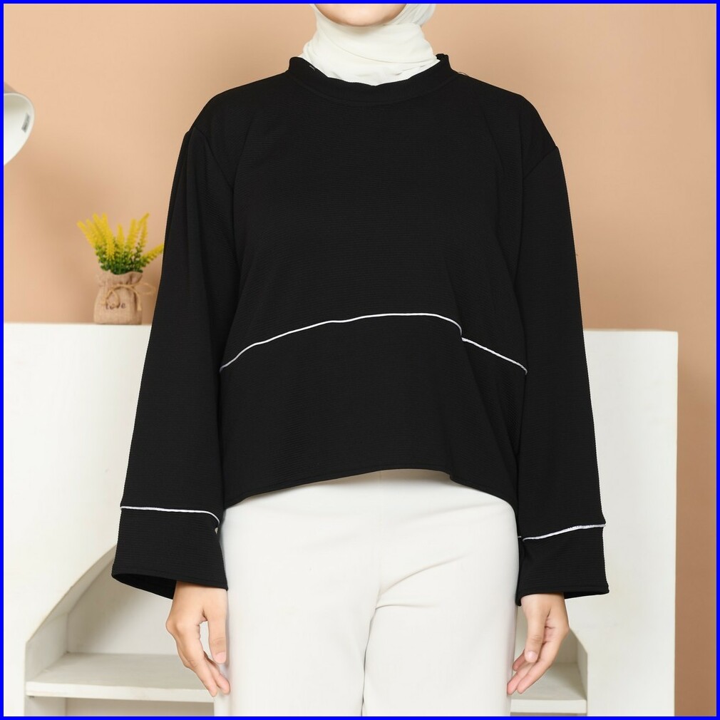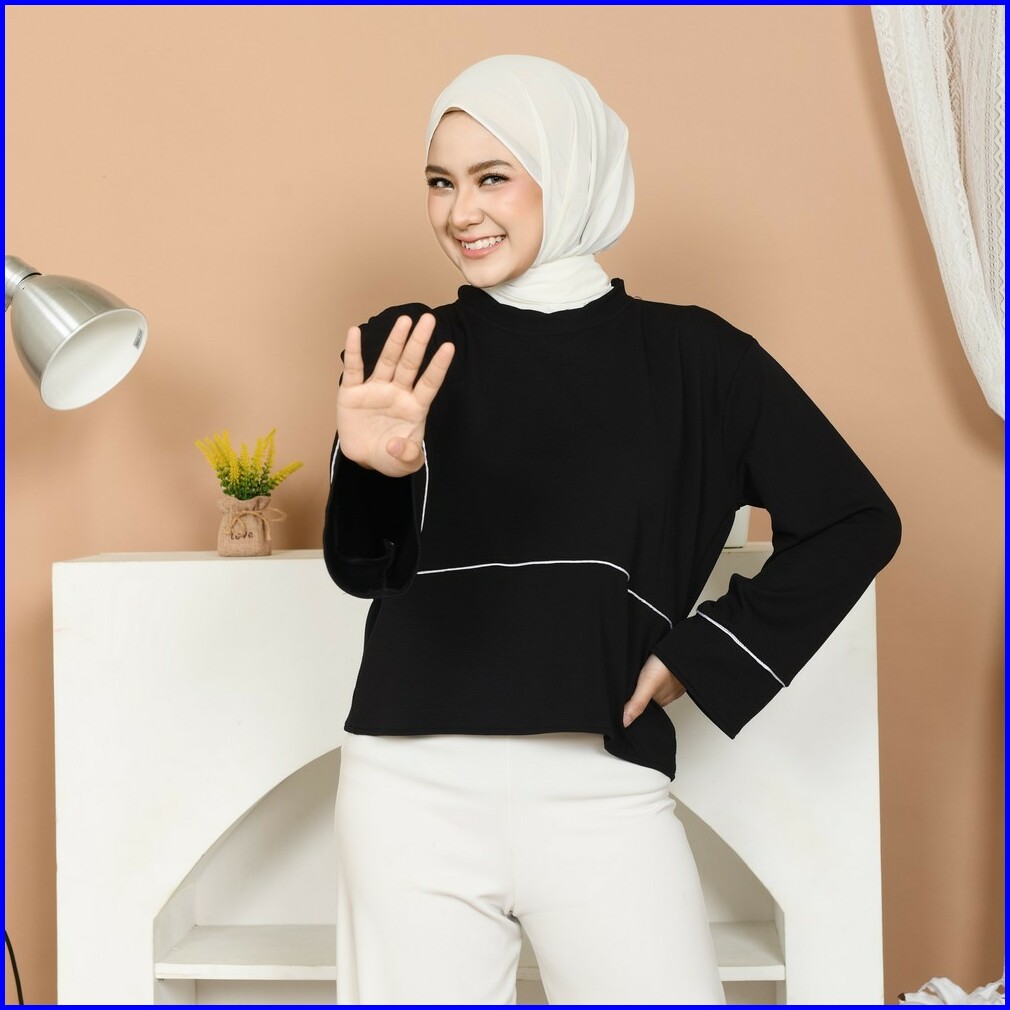 Mybamus Selia Blouse Dark Choco With List Atasan Wanita Lengan Panjang