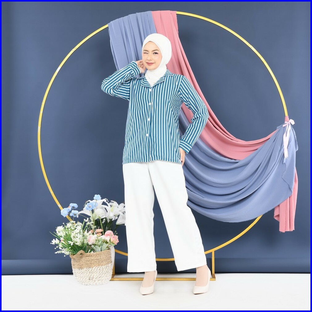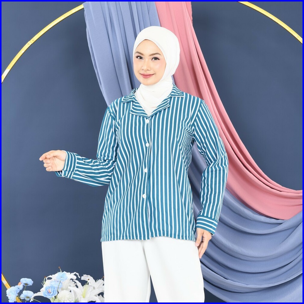 Mybamus Behati Stripe Shirt Eden Green M16126 R5s6 - Atasan Muslim